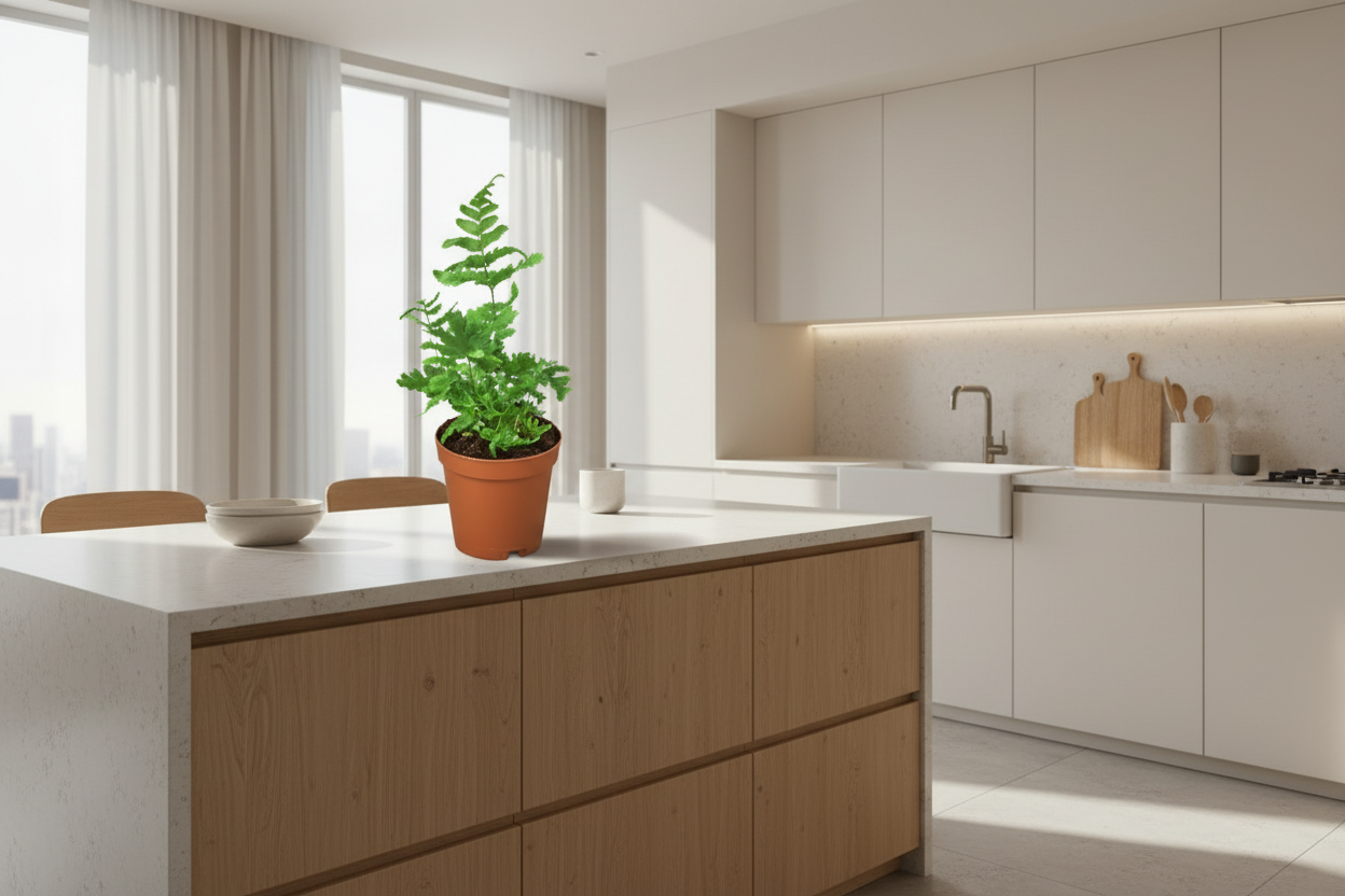 Those copper fronds aren’t a problem — they’re the whole point. Let them shine, keep moisture consistent, and this fern will quietly glow while everything else tries too hard.