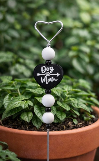 Celebrate your Dog Mom status loud and proud with this adorable Dog Mom Plant Pick. Featuring a black heart with white lettering and arrow detail, this pick adds personality, love, and a little pet-parent pride to any plant pot.