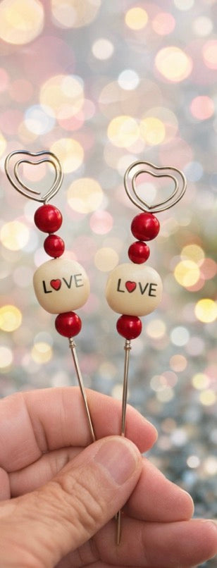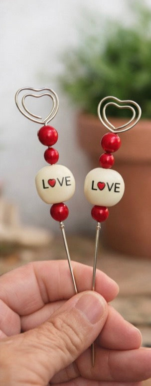 Featuring a cream bead stamped with LOVE and a tiny red heart, paired with glossy red accent beads and a heart-shaped wire topper, this plant pick adds just the right touch of warmth and personality. Nestled into the soil, it brings a soft pop of color without distracting from your plant’s natural beauty.